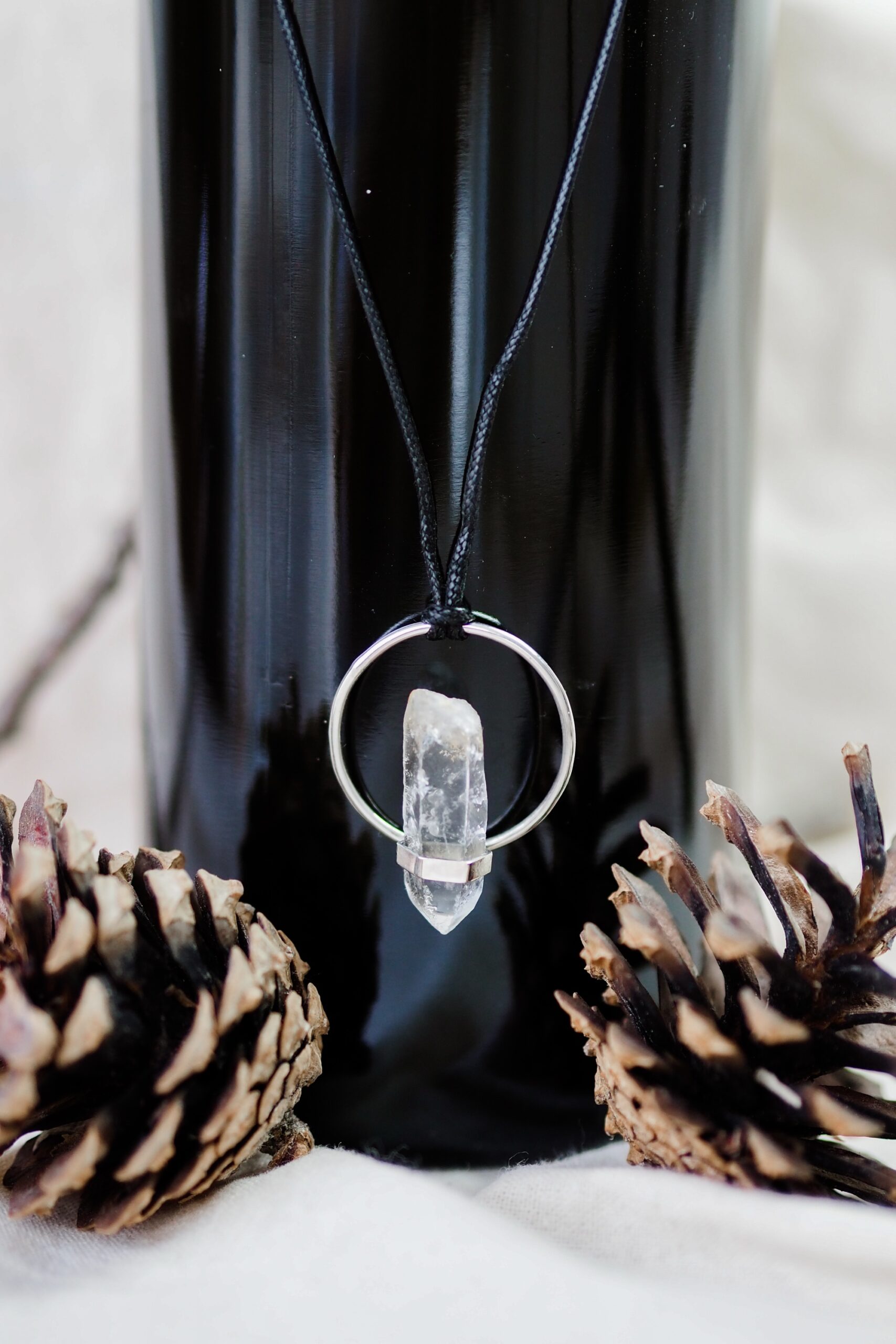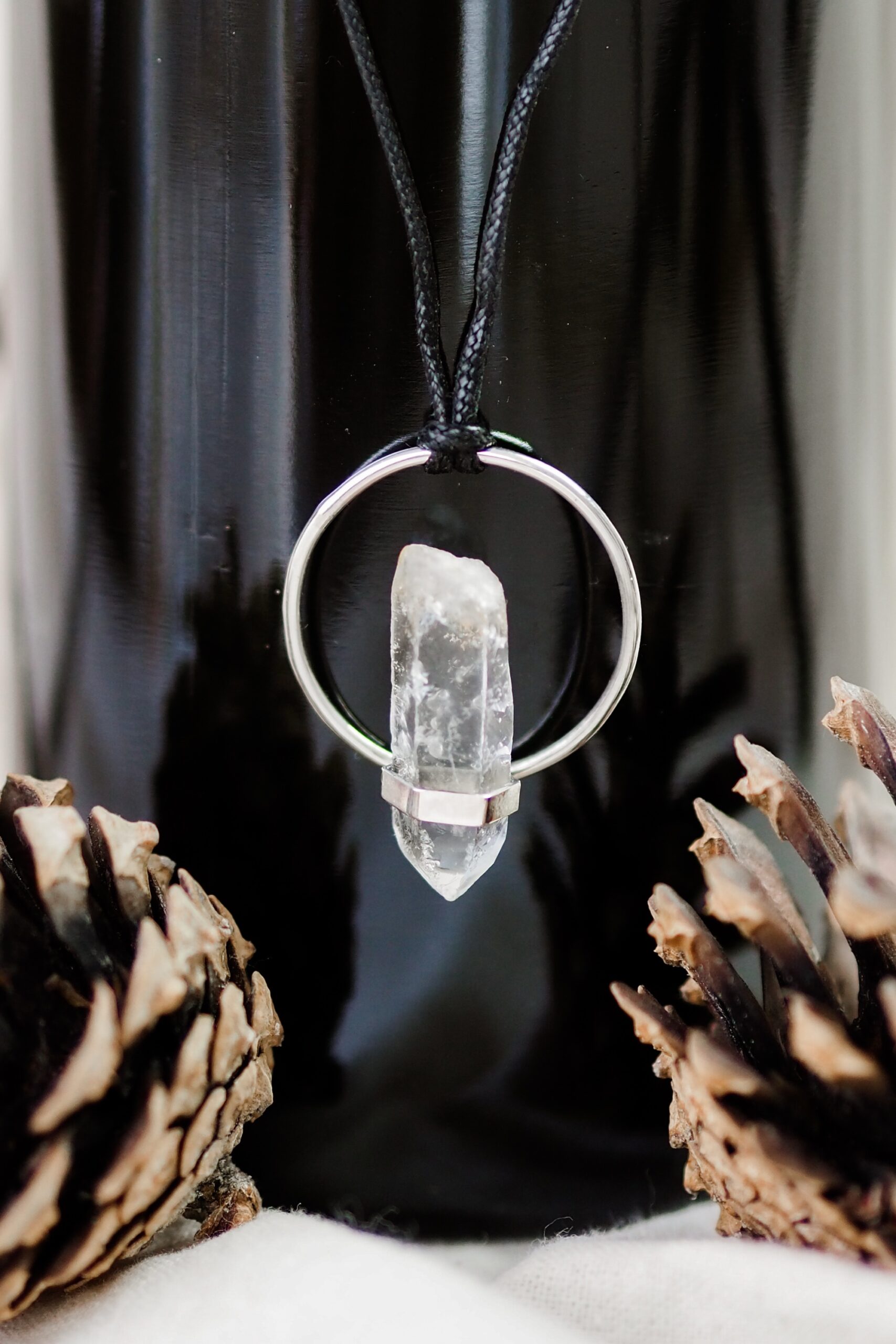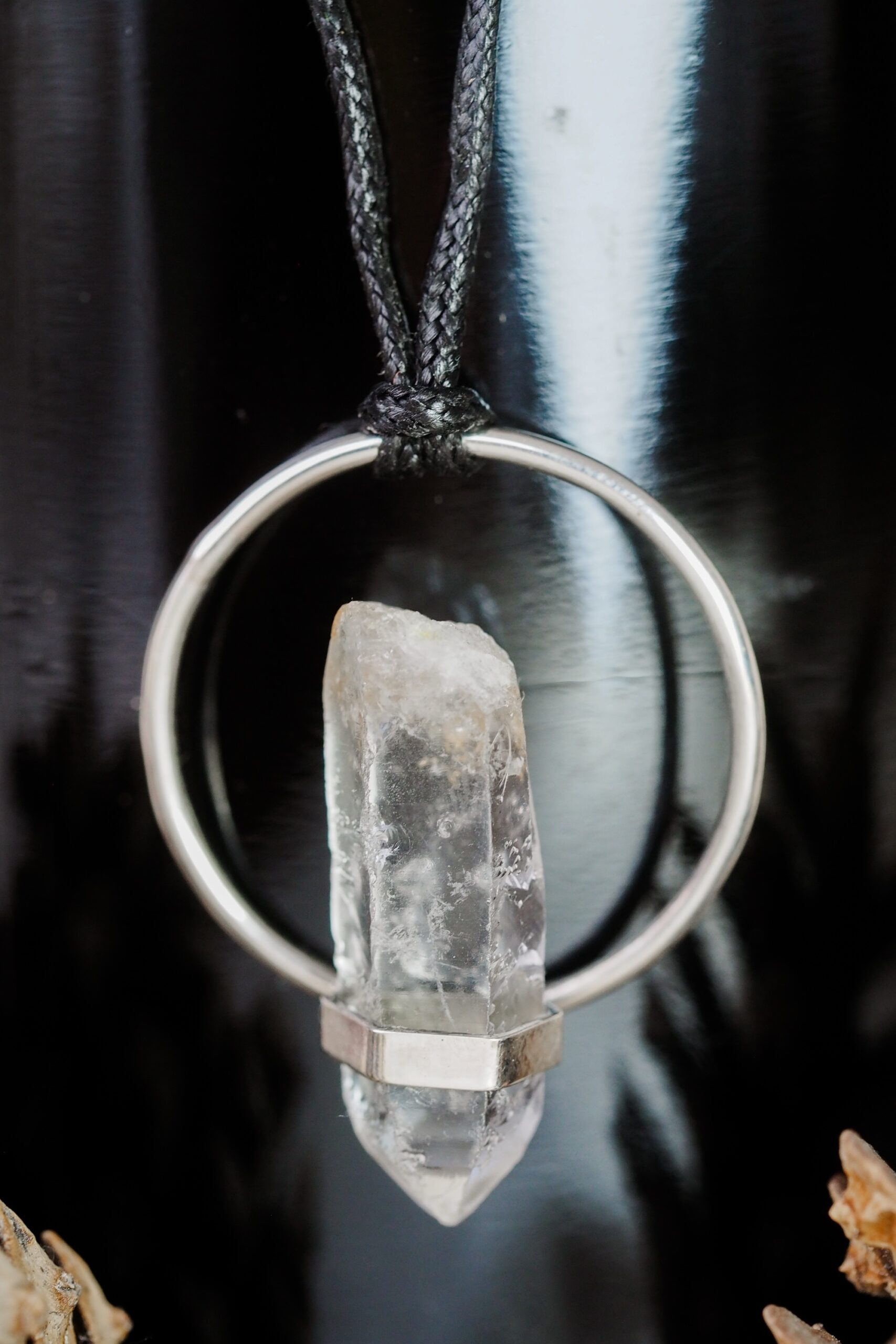 bündner Bergkristall in Silber gefasst in einem Kreis.