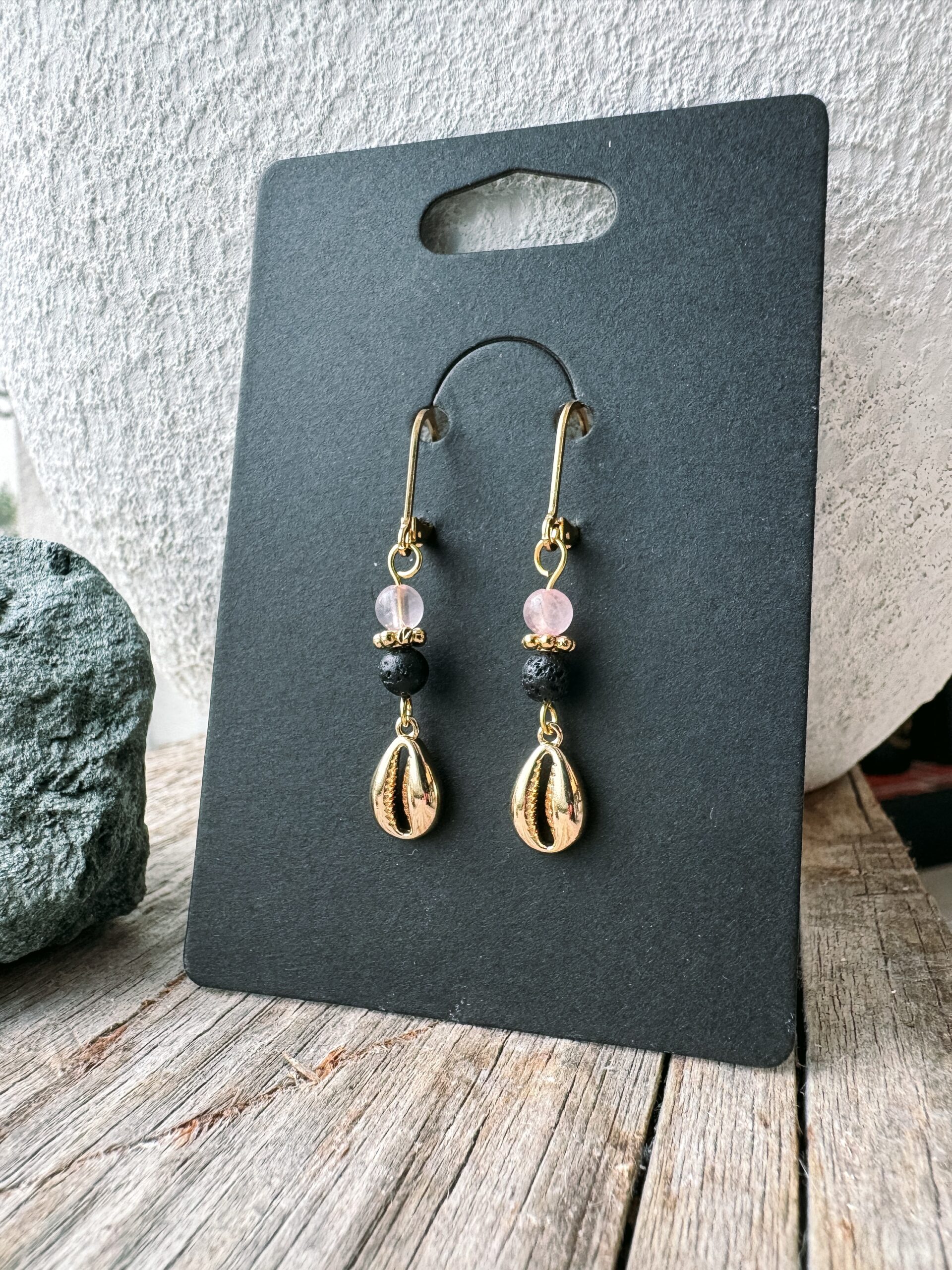 Modeschmuck mit vergoldetem Muschel Charm, Lawastein und Rosenquarz.